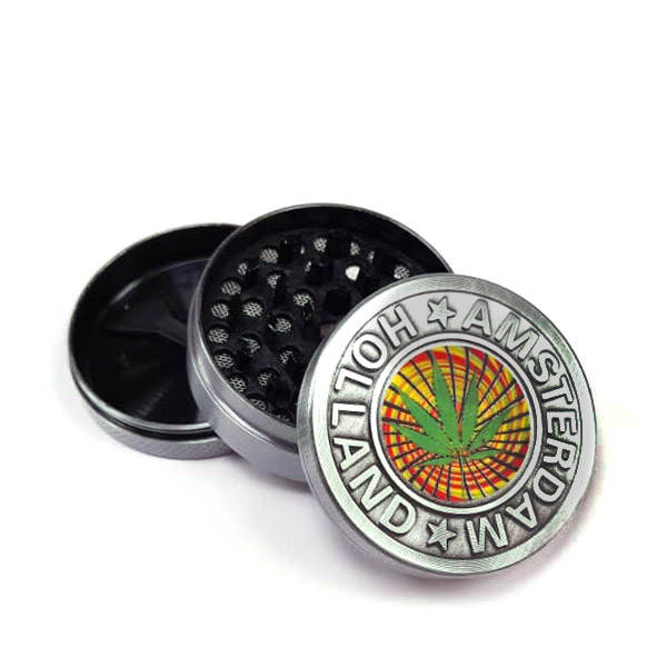 Grinder Polinizador Metal Cannabis Leave Amsterdam Silver 50 mm.